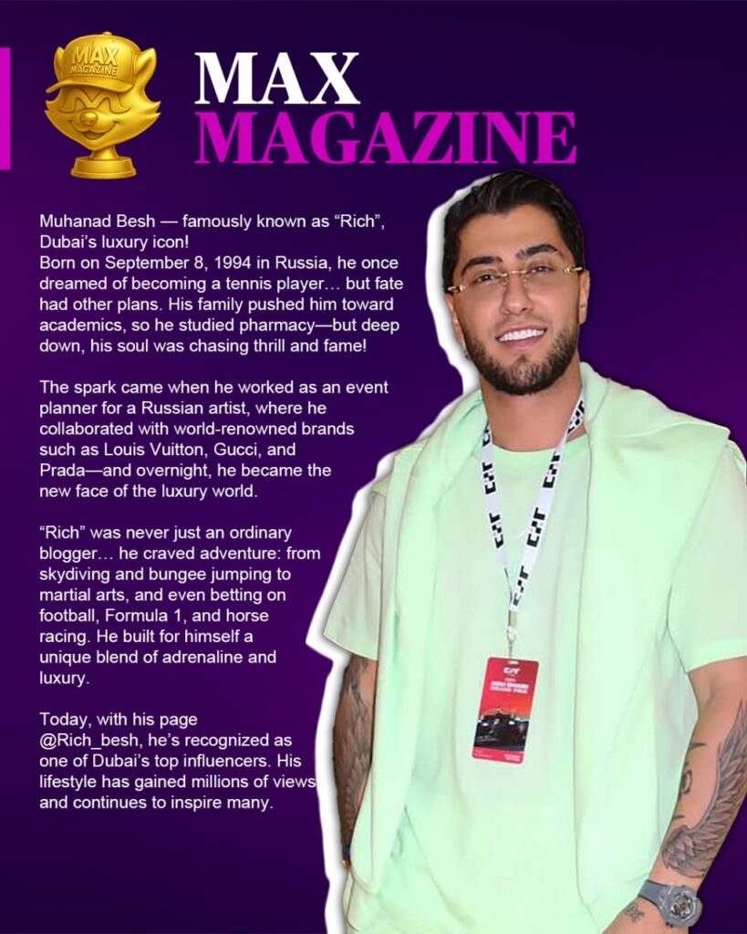 Muhanad Besh was born on September 8, 1994, in Russia into a high-class family. While he initially dreamed of becoming a professional tennis player, he pursued a degree in pharmacy in Russia to honor his family’s wishes. However, his career path took a turn when he landed his first job as an event planner for a Russian artist. This led to his entry into the fashion world. He is currently based in Dubai and is a top influencer in the fashion industry.