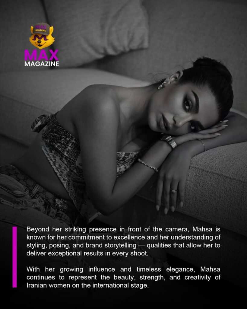Mahsa aims to continue expanding her career in the global fashion industry, representing Middle Eastern grace on international runways. She plans to collaborate with top fashion designers, luxury brands, and photographers worldwide, while inspiring others to embrace ambition, beauty, and self-expression.
